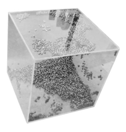 Durch elektrostatische Aufladung haften die Kügelchen an der Innenseite der Würfel.