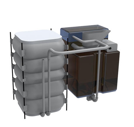 an. Das Gewicht im Kopfteil dieses Tanks wirkt