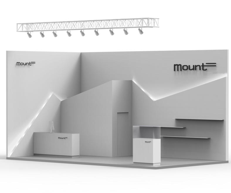 Dieser Messestand ist bewusst schlicht gehalten, um den kleinteiligen Exponaten vorrangige Wirkung zu geben. Die Beleuchtung